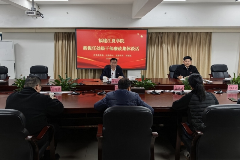 1月29日上午,校紀委召開新提任處級干部廉政談話會。校黨委常委、紀委書記、監(jiān)察專員林朝旭出席會議并講話,7名新提任處級干部參加會議。